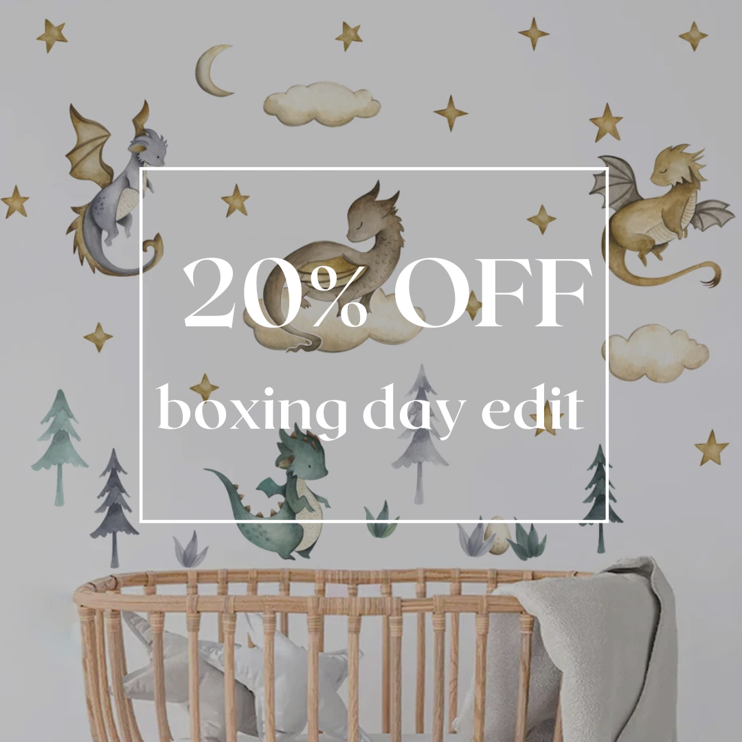 Enjoy our early Boxing Day 20% off edit — nursery décor, baby gifts, plush toys, blankets, night lights & more.